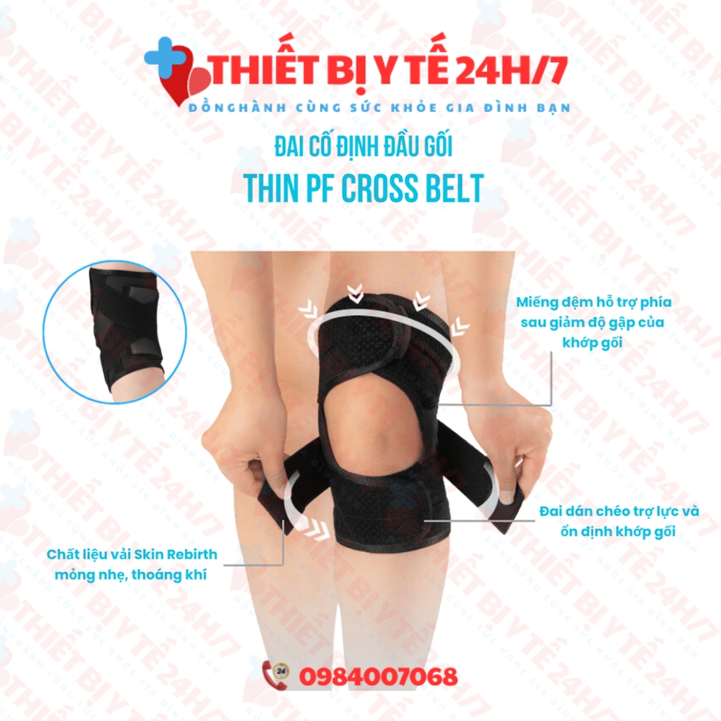 Đai Cố Định Đầu Gối – Thin PF Cross Belt là giải pháp toàn diện hỗ trợ khớp gối, được thiết kế kết hợp 2 đai chính bảo vệ khớp gối và 2 đai phụ tạo lực liên kết khớp gối và điều chỉnh định hình khớp gối hướng vào trong hoặc ra ngoài. Đai được thiết kế thoáng khí & chống trượt đáp ứng nhu cầu bảo vệ khớp khớp gối trong khi điều trị hoặc hỗ trợ vận động, đi lại hàng ngày nhẹ nhàng giảm đau, giảm áp lực lên khớp gối.