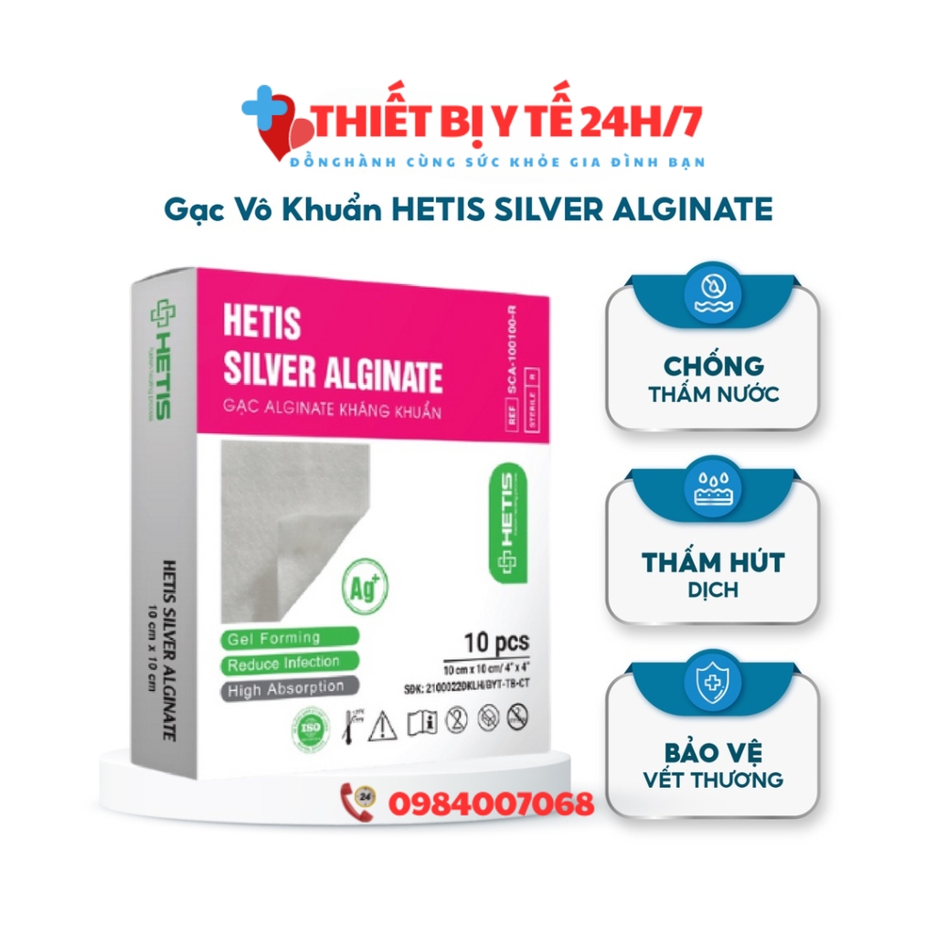 Gạc HETIS Alginate Silver kháng khuẩn - Thấm hút dịch, liền thương nhanh, chế sự phát triển của vi khuẩn