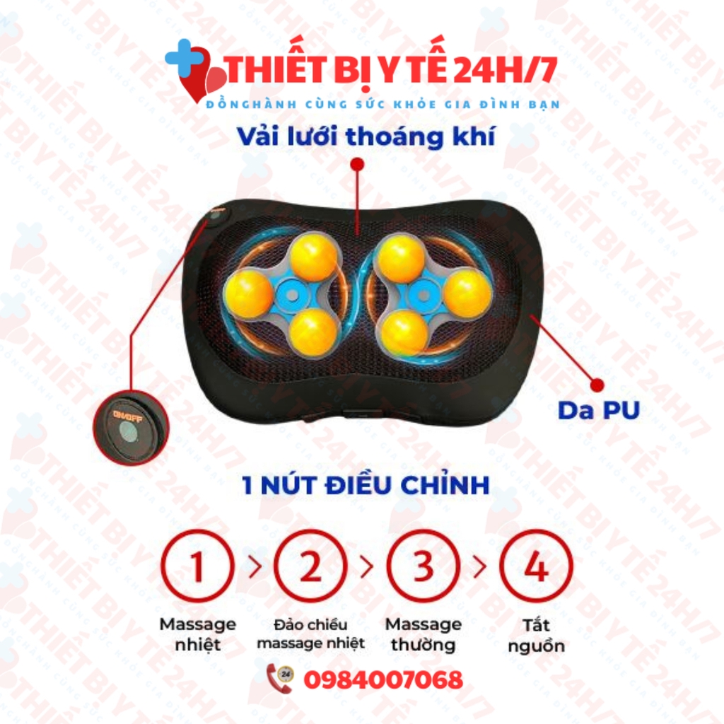 - Bi lăn 3D đảo chiều liên tục, mô phỏng kỹ thuật Shiatsu mang lại cảm giác massage chân thực như bàn tay con người. Chế độ xoa bóp của gối massage hồng ngoại tác động vào từng huyệt đạo, kích thích cơ khớp tăng hiệu quả giảm đau mỏi, giải toả căng thẳng cơ bắp.