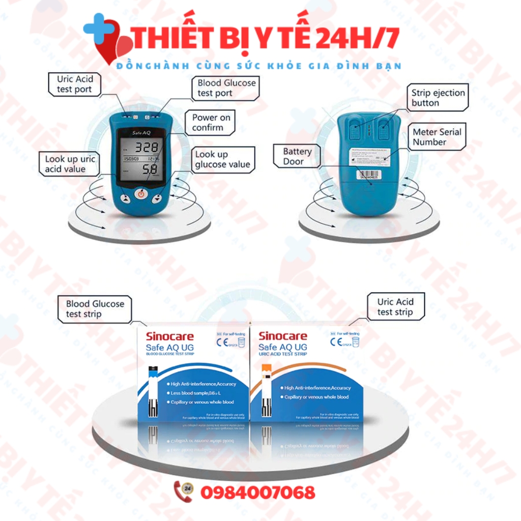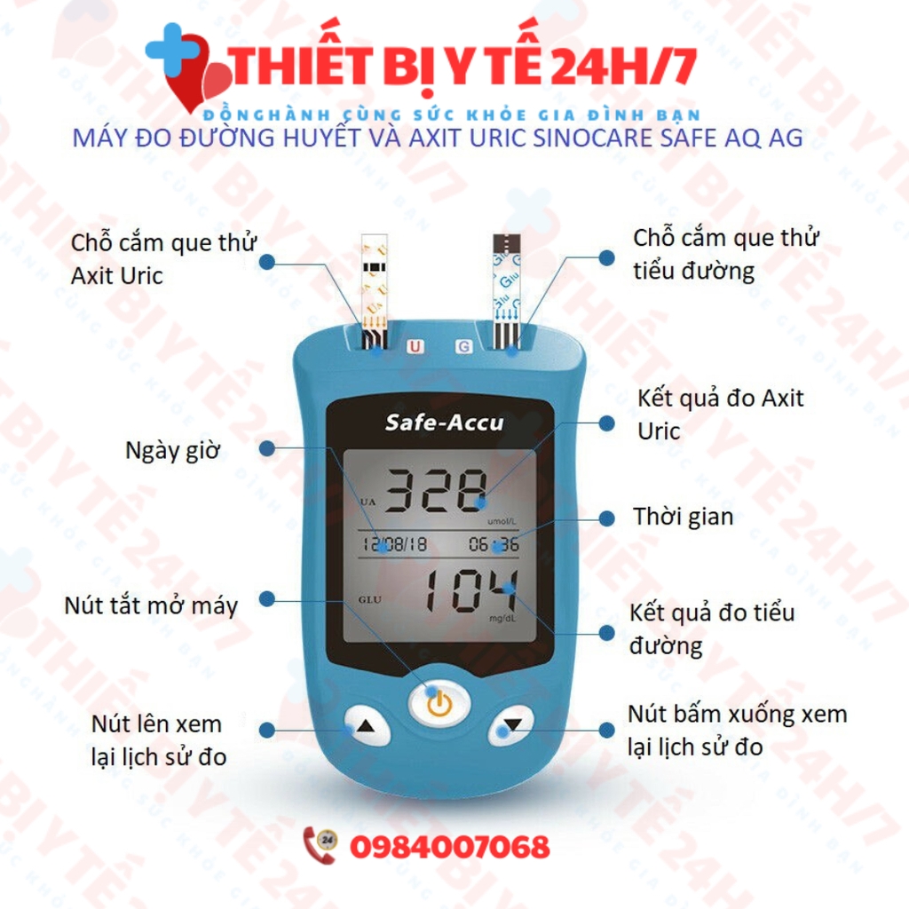 Máy Đo Đường, Đo Acid Uric (Đo Gout) Sinocare Safe AQ UG (Tặng 100 Que + 100 Kim)