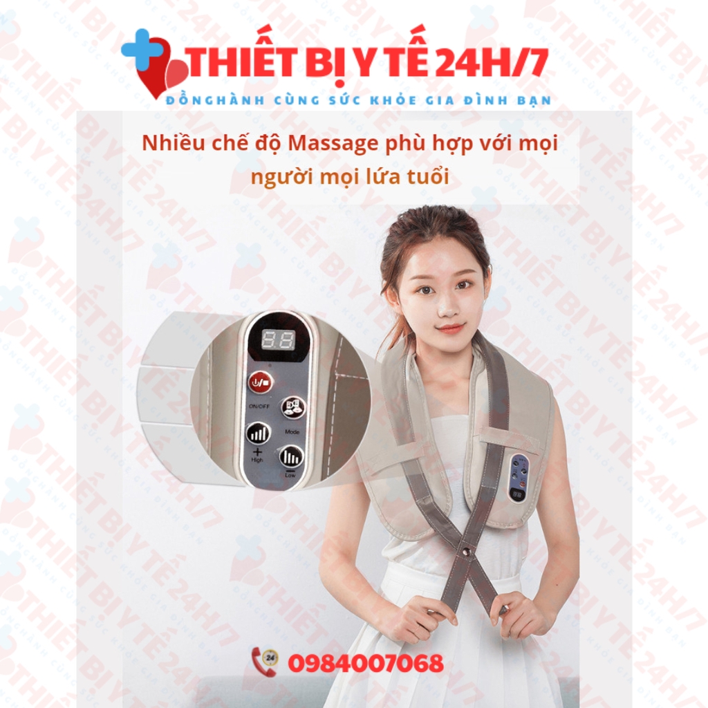 Máy được thiết kế khoác trên vai để massage vùng cổ vai gáy và lưng - những vùng mà người lao động hay nhân viên văn phòng thường bị đau mỏi. Ngoài ra, máy còn sử dụng để massage các vùng khác như mông, đùi. Để massage vai gáy, bạn chỉ cần quàng đai massage lên vai, có thể cài cúc phía trước hoặc dùng 2 tay giữ 2 dây. Khi massage vùng lưng, mông, đùi thì di chuyển đai tới vùng mong muốn.