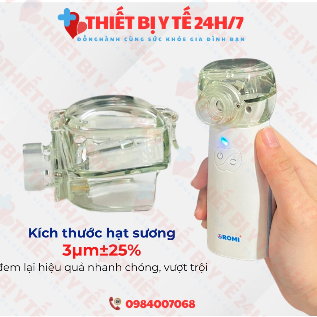 - Máy xông mũi họng cầm tay OROMI được ứng dụng công nghệ lưới rung siêu âm tiên tiến cho hiệu quả xông hơi cao hơn các dòng máy khác trên thị trường.