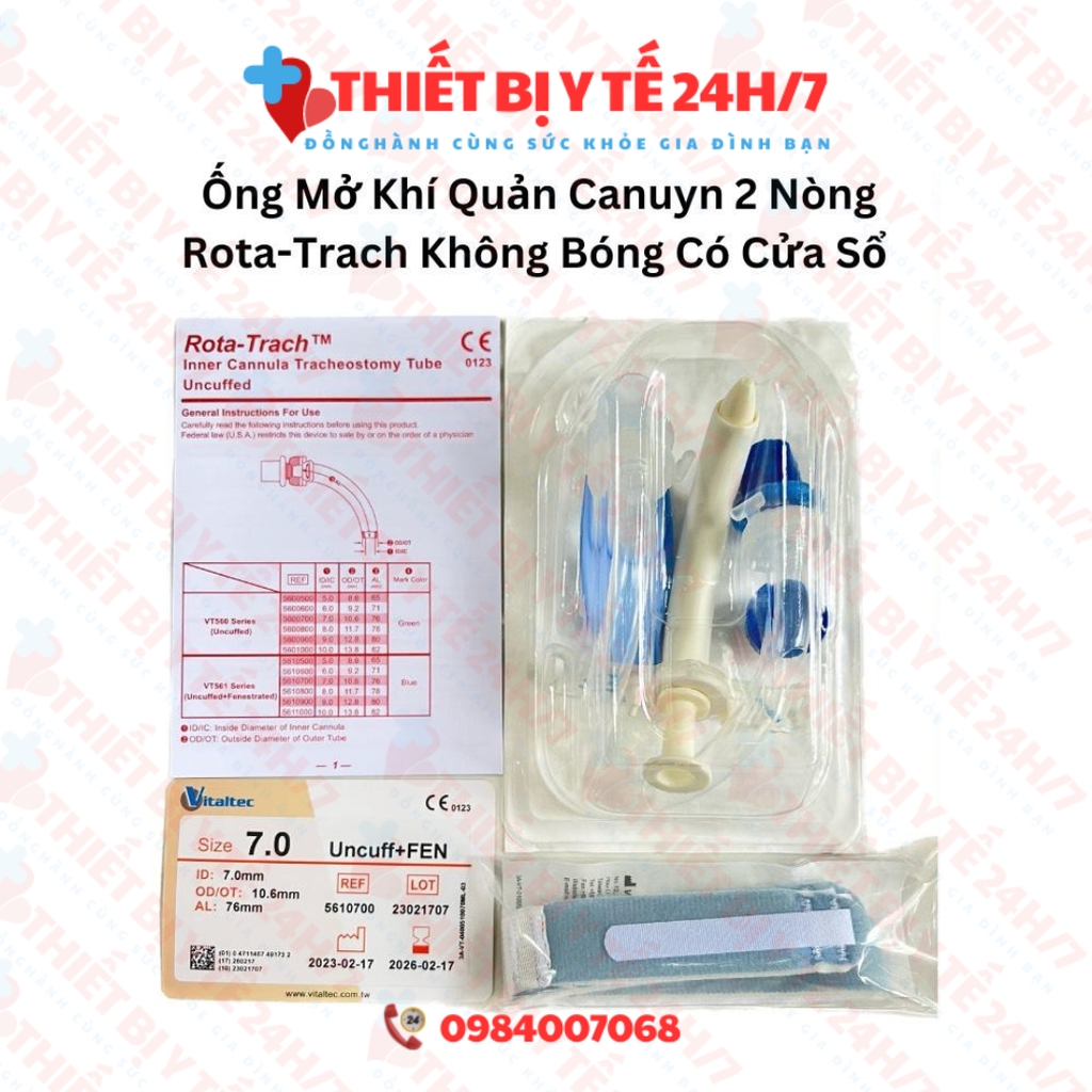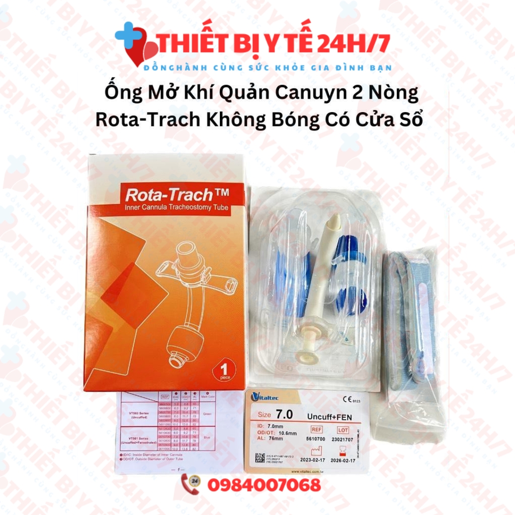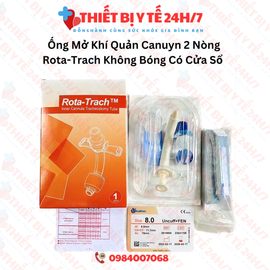 Đánh giá Ống Mở Khí Quản Canuyn 2 Nòng Rota-Trach Không Bóng Có Cửa Sổ 7 Hoặc 8 UNCUFF+FEN