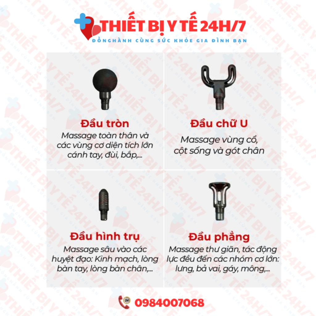 - Đi kèm 4 đầu massage có thể sử dụng cho nhiều vị trí khác nhau.