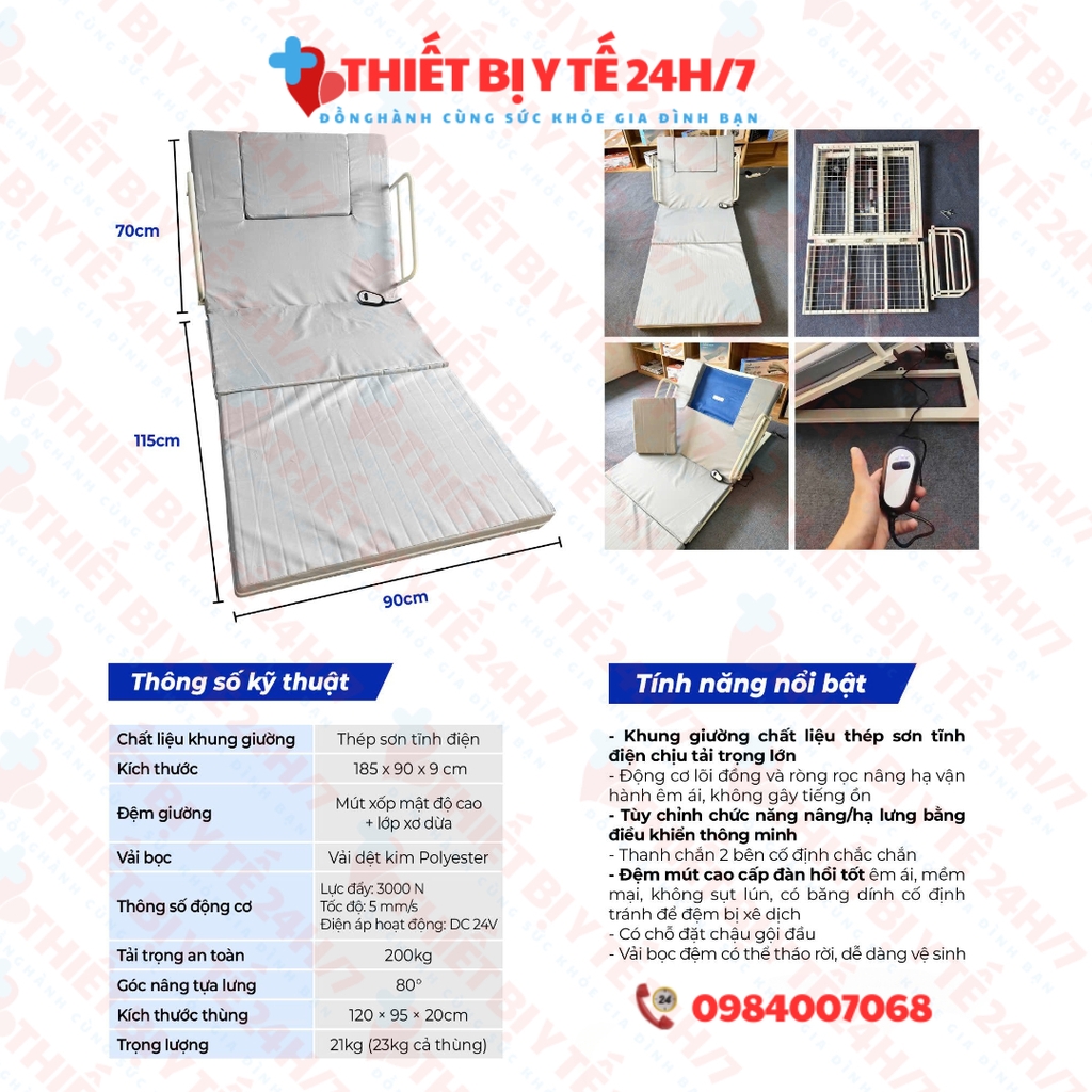 - Tùy chỉnh chức năng nâng/hạ lưng bằng điều khiển thông minh