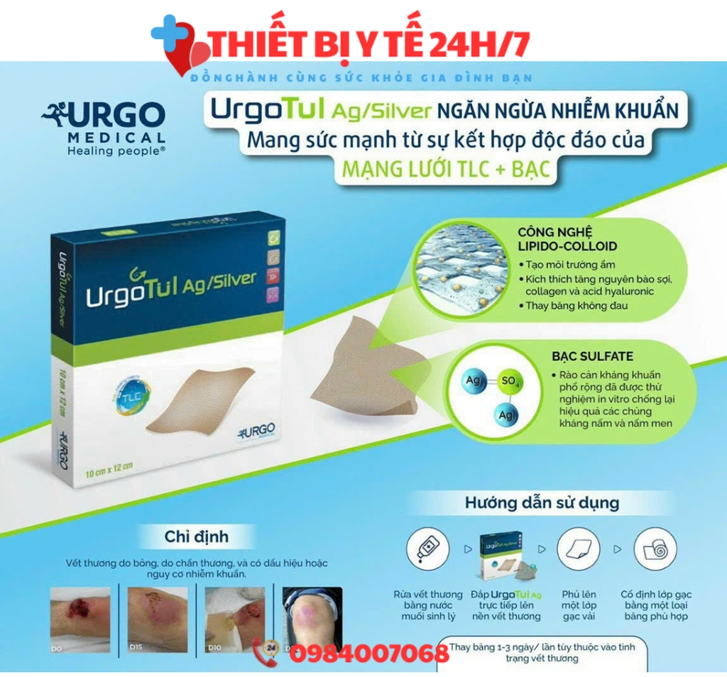 UrgoTul Ag/Silver là băng tẩm muối bạc sử dụng Công nghệ TLC-Ag độc quyền được sáng chế bởi LABORATORIES URGO với 5 ưu điểm nổi bật: