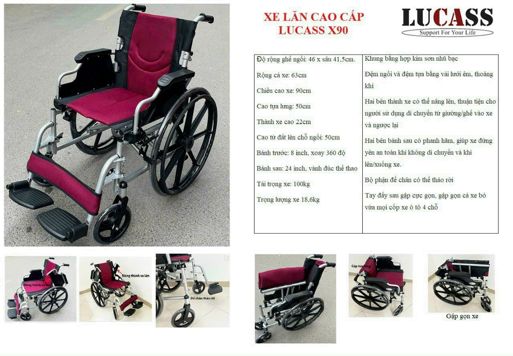 1. Giới thiệu xe lăn tiêu chuẩn Lucass X90